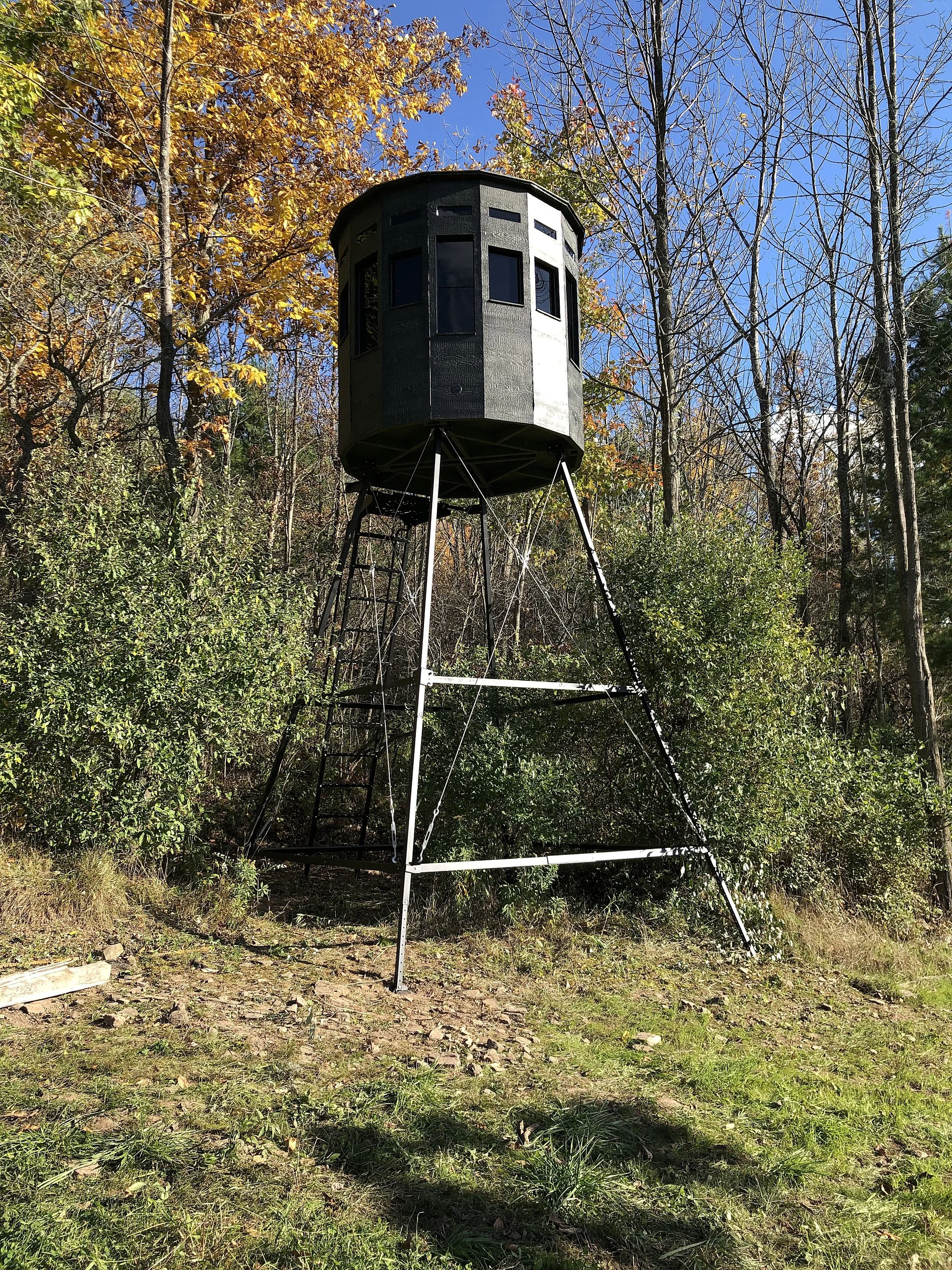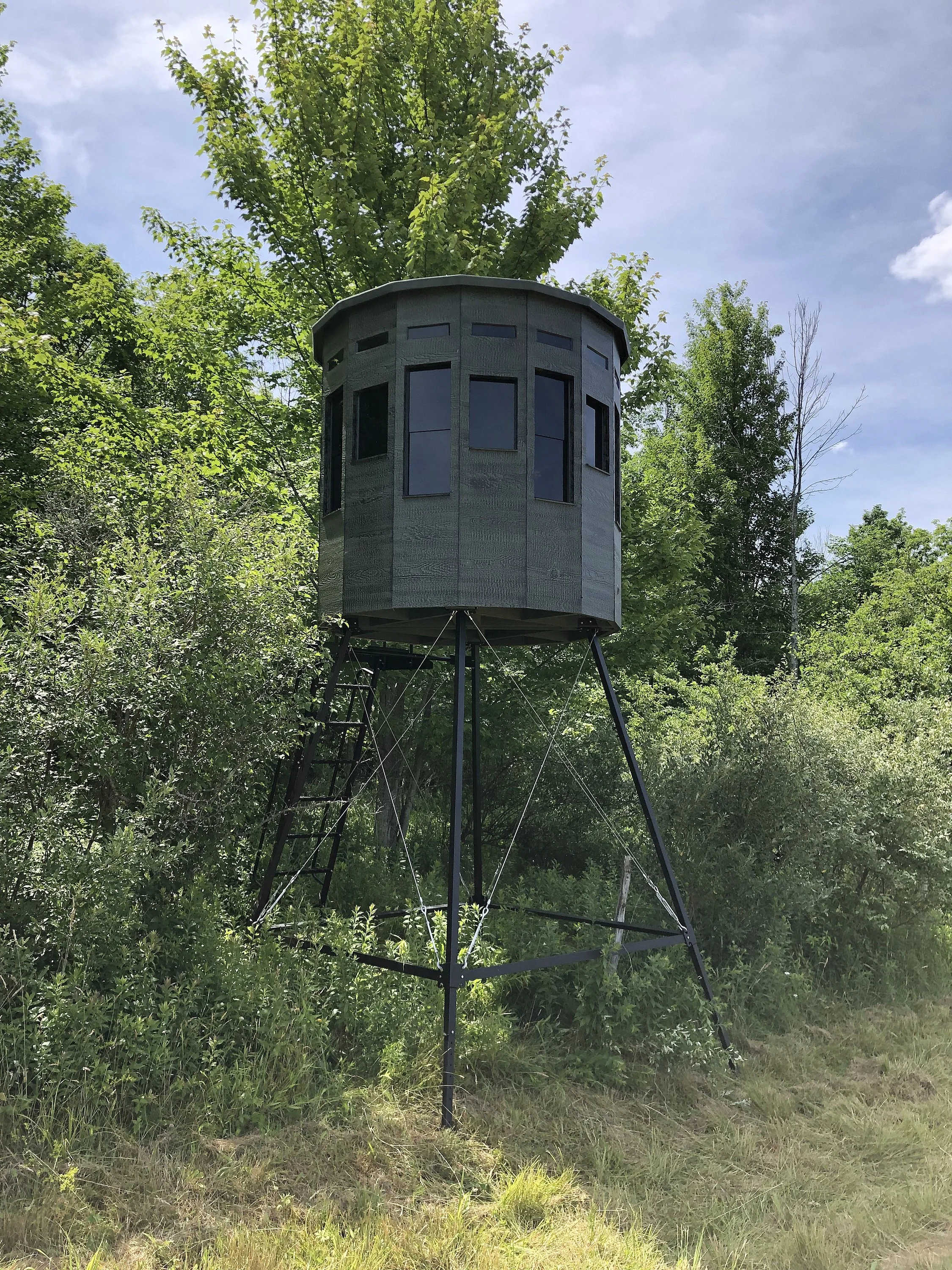 Elevate your hunting blind with one of our metal tower stands. Or combine a tower stand with our trailer system to create a mobile blind setup.